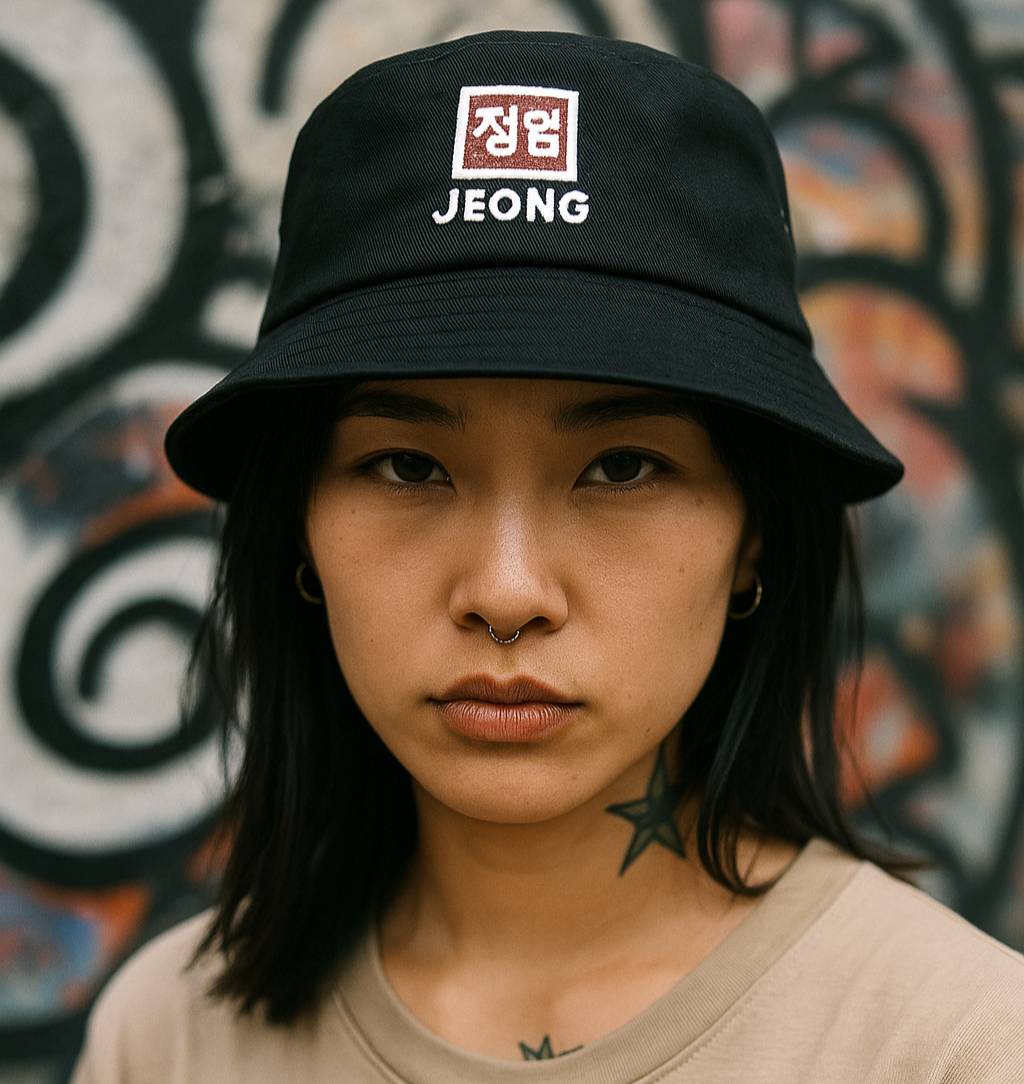 Get the vibe of Jeong with this bucket hat featuring cool details that mix tradition with a fresh look. A perfect way to keep your everyday style real.
